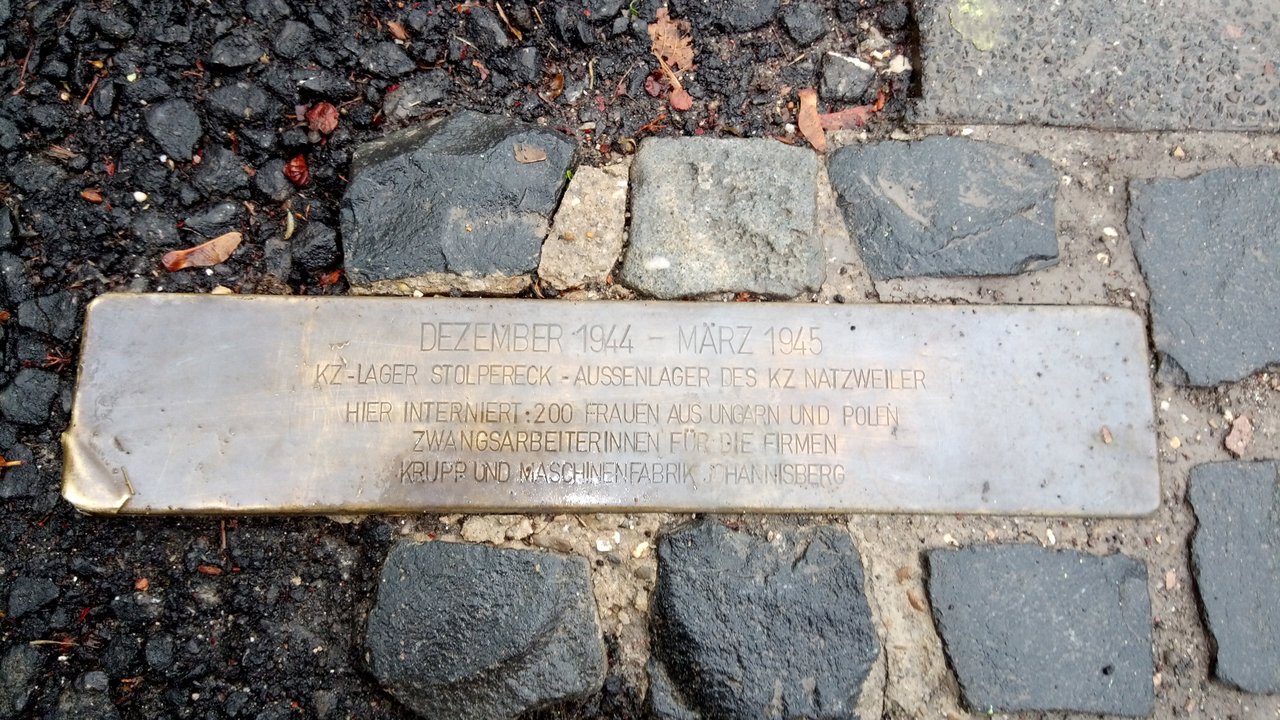 In Geisenheim gab es im letzten Kriegsjahr, im letzten Jahr der nationalsozialistischen Herrschaft, die Außenstelle des Konzentrationslagers Natzweiler, in dem 200 jüdische Frauen aus Ungarn und Polen Zwangsarbeit leisten mussten. Sie stellten in der Maschinenfabrik Johannisberg Teile von Granaten her, die sie in den letzten Kriegsmonaten für die deutsche Wehrmacht und den sogenannten Volkssturm produzierten. Als die Alliierten von der linken Rheinseite her näher an Geisenheim kamen, wurden die 200 internierten Frauen auf einen Todesmarsch nach Süddeutschland geschickt, auf dem viele ihr Leben verloren.